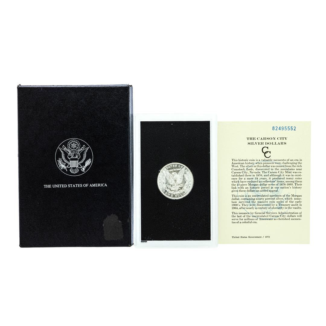 One 1882-CC $1 Morgan Silver Dollar Coin GSA Hoard Uncirculated w/ Box & COA.