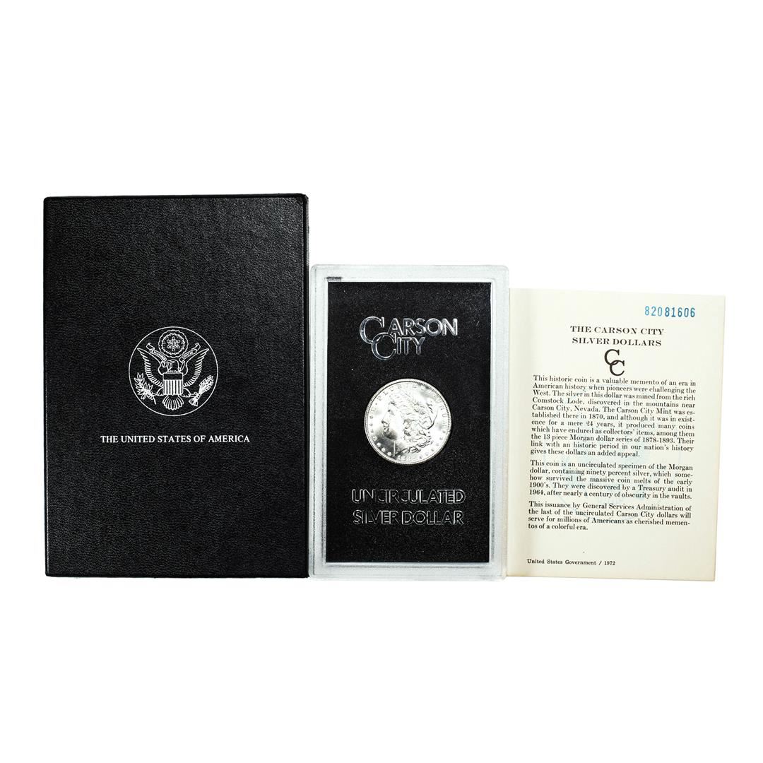 One 1882-CC $1 Morgan Silver Dollar Coin GSA Hoard Uncirculated w/ Box & COA.