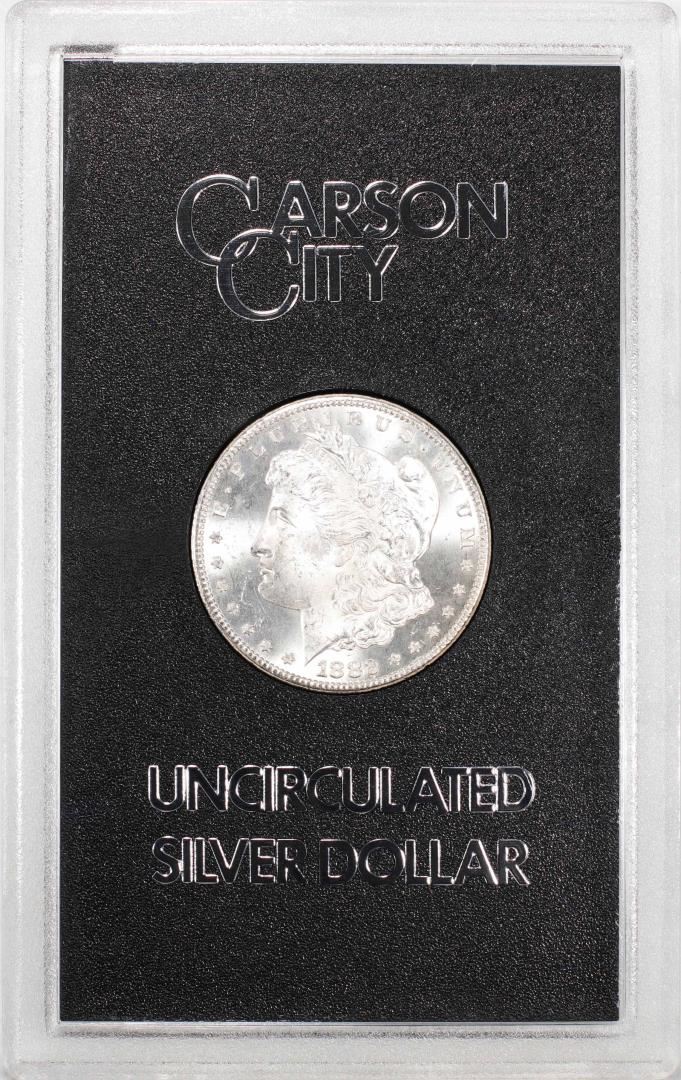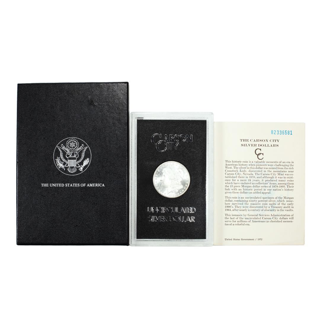 One 1882-CC $1 Morgan Silver Dollar Coin GSA Hoard Uncirculated w/Box & COA.