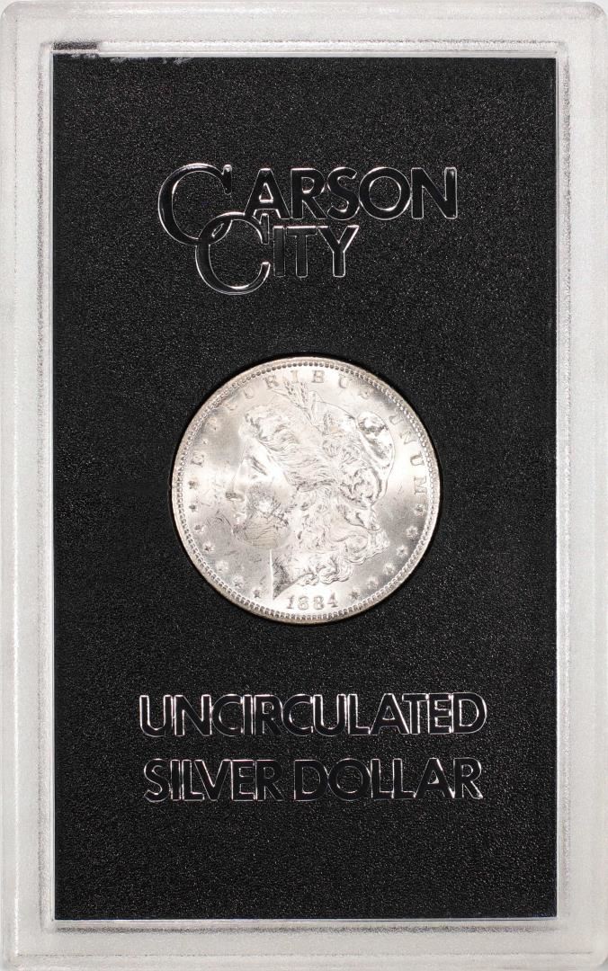 One 1882-CC $1 Morgan Silver Dollar Coin GSA Hoard Uncirculated w/Box & COA.