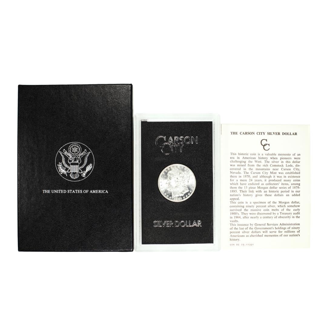 One 1882-CC $1 Morgan Silver Dollar Coin GSA Hoard Uncirculated w/Box & COA.