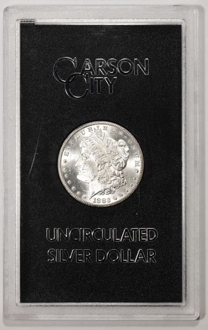 One 1882-CC $1 Morgan Silver Dollar Coin GSA Hoard Uncirculated w/Box & COA.