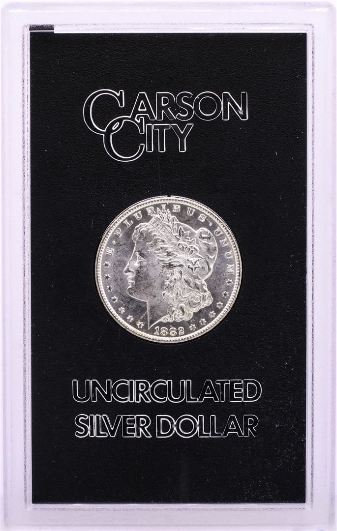 One 1882-CC $1 Morgan Silver Dollar Coin GSA Hoard Uncirculated with Box & COA.