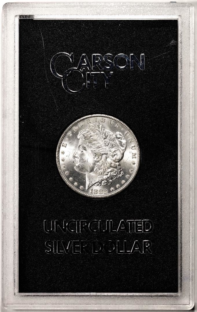 One 1882-CC $1 Morgan Silver Dollar Coin GSA Hoard Uncirculated.