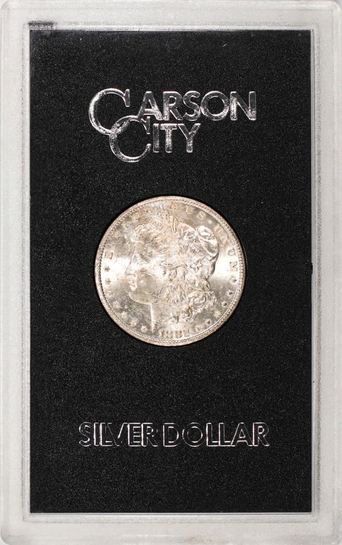One 1882-CC $1 Morgan Silver Dollar Coin GSA Hoard with Box & COA.