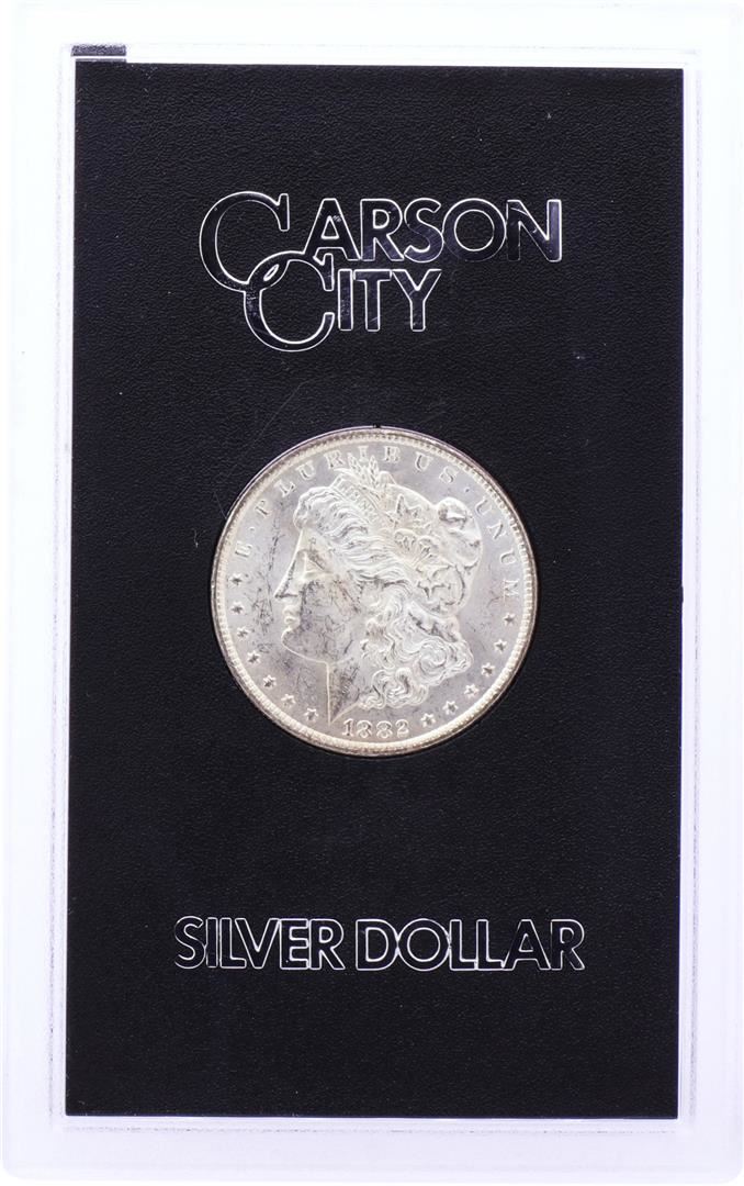 One 1882-CC $1 Morgan Silver Dollar Coin GSA Hoard with Box.