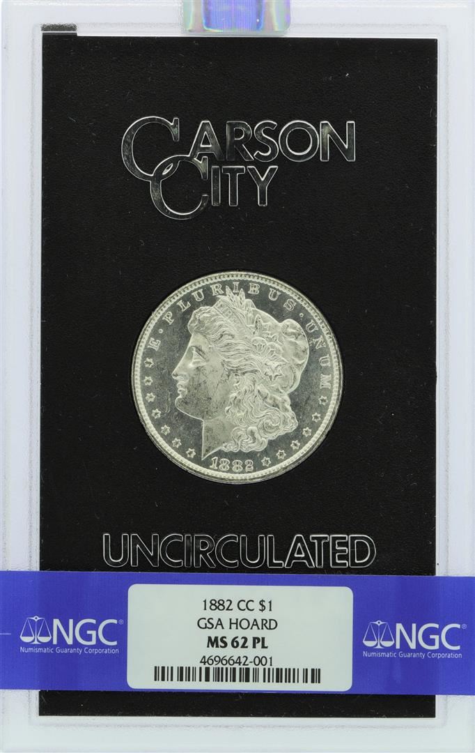 One 1882-CC $1 Morgan Silver Dollar Coin GSA NGC MS62PL w/ Box & COA. NGC Certified.