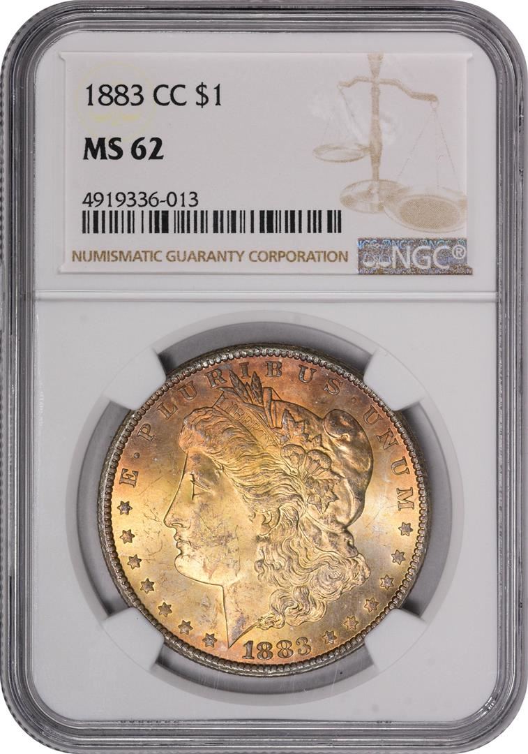 One 1882-CC $1 Morgan Silver Dollar Coin NGC MS62 Amazing Toning. NGC Certified.