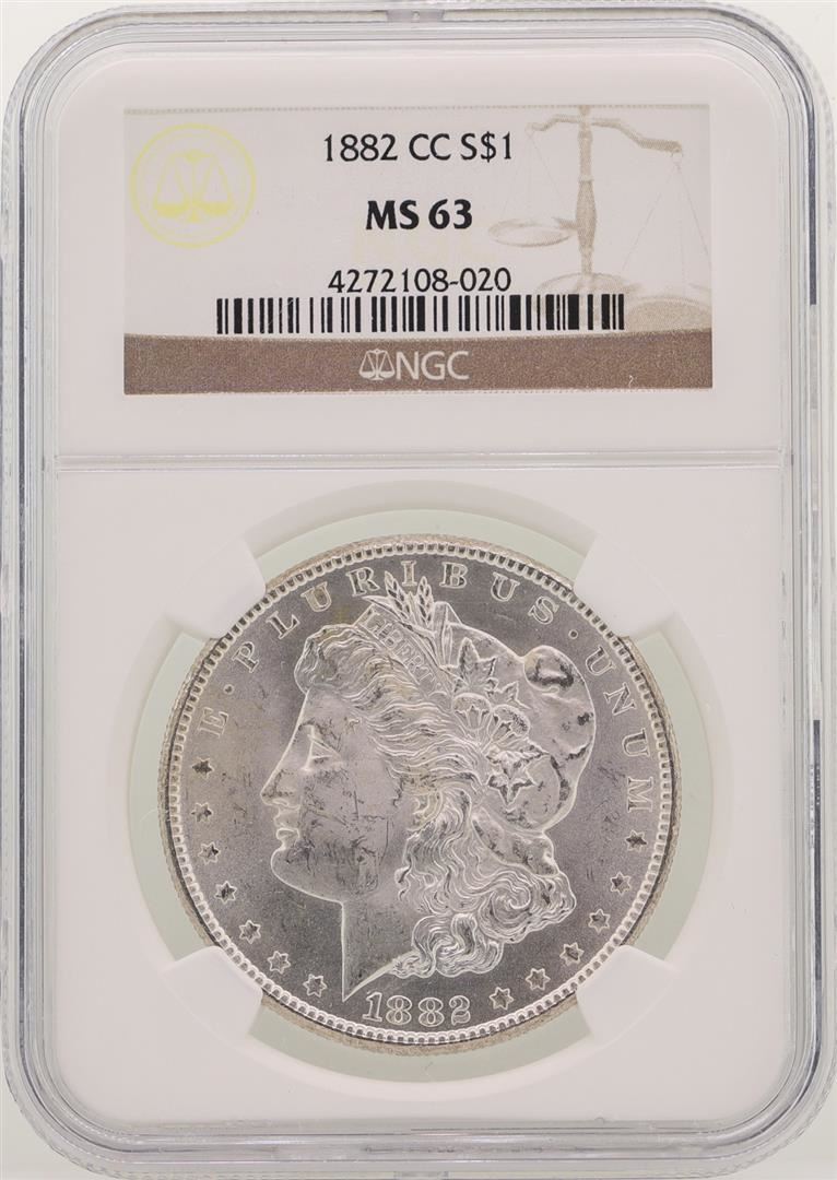One 1882-CC $1 Morgan Silver Dollar Coin NGC MS63. NGC Certified.