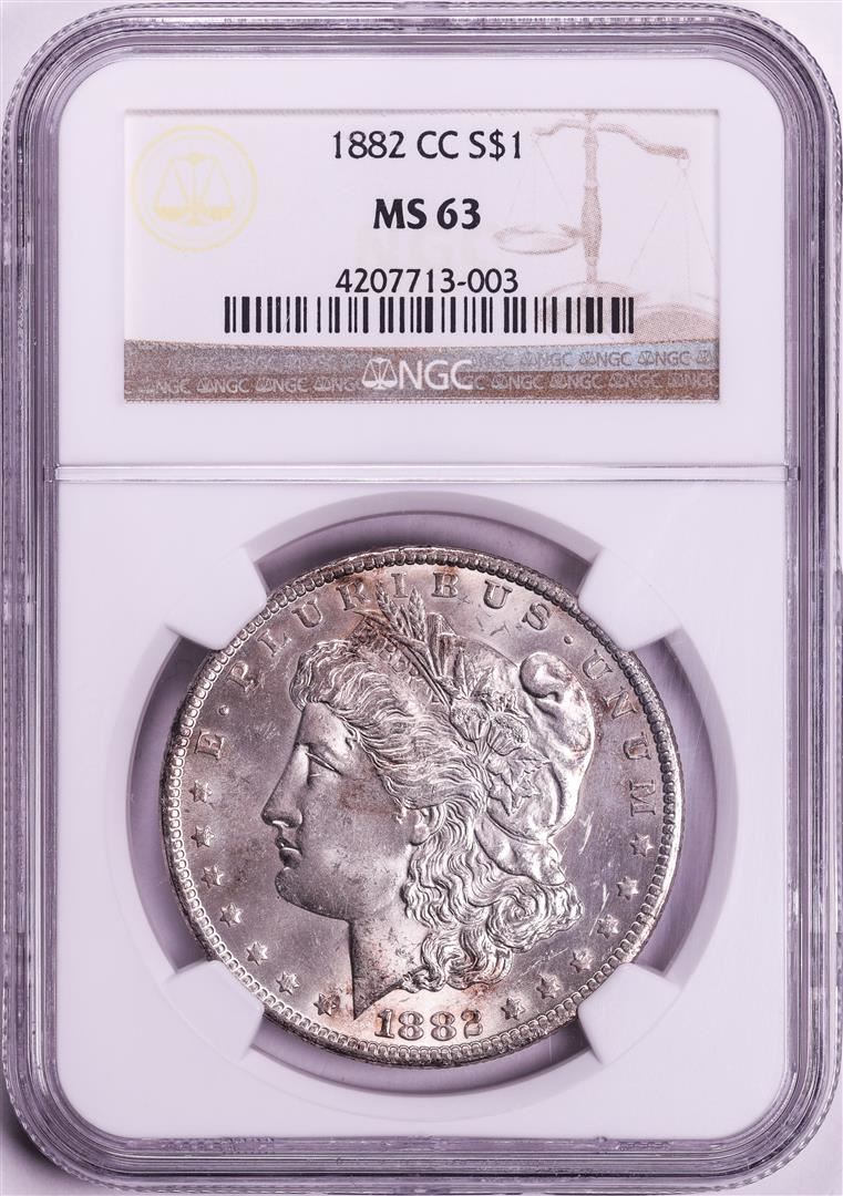 One 1882-CC $1 Morgan Silver Dollar Coin NGC MS63. NGC Certified.