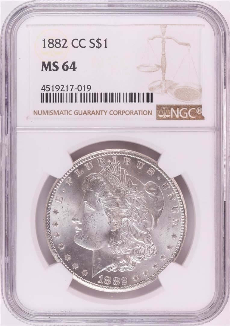 One 1882-CC $1 Morgan Silver Dollar Coin NGC MS64. NGC Certified.