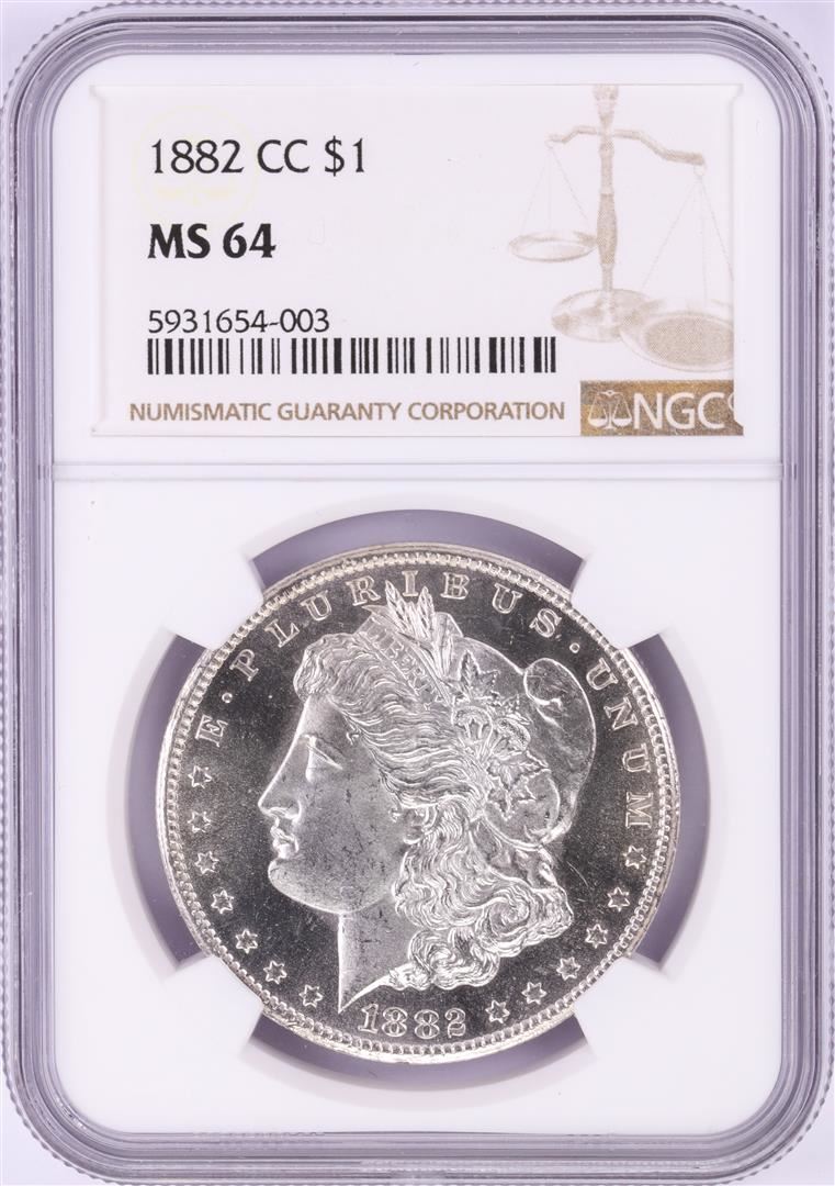 One 1882-CC $1 Morgan Silver Dollar Coin NGC MS64. NGC Certified.