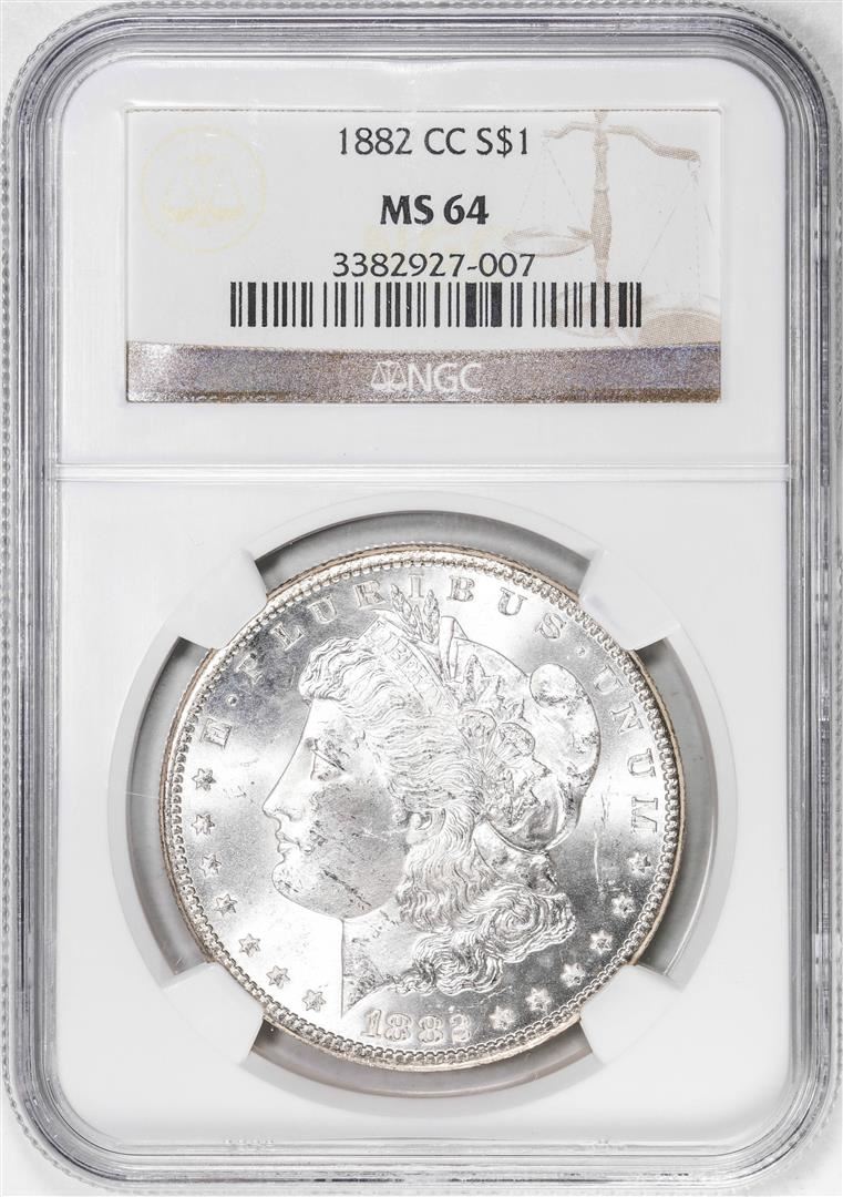 One 1882-CC $1 Morgan Silver Dollar Coin NGC MS64. NGC Certified.