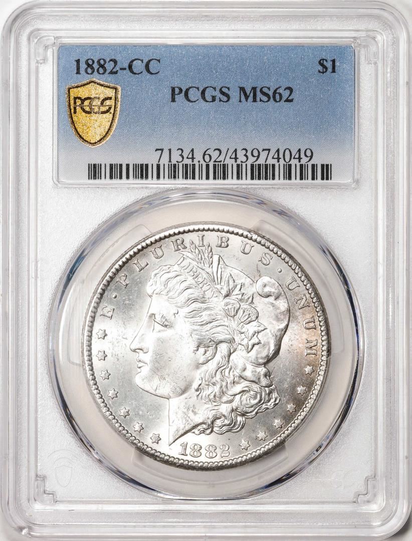 One 1882-CC $1 Morgan Silver Dollar Coin PCGS MS62. PCGS Graded.