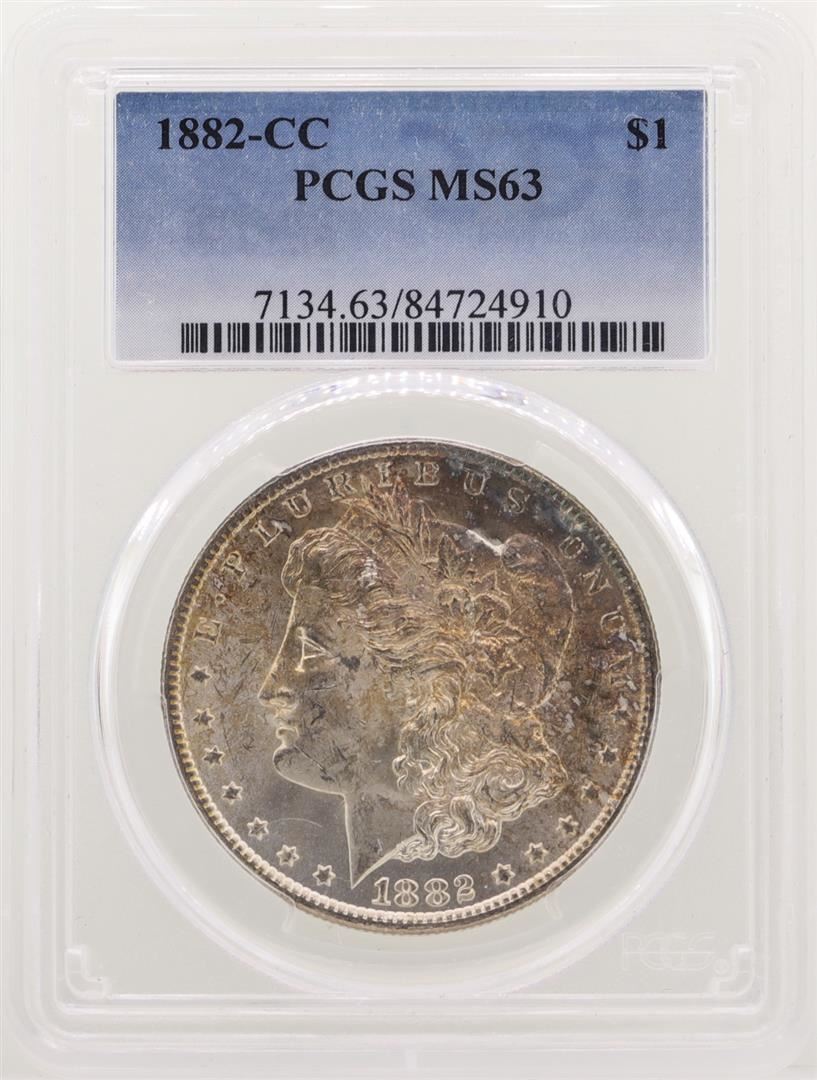 One 1882-CC $1 Morgan Silver Dollar Coin PCGS MS63 Nice Toning. PCGS Graded.