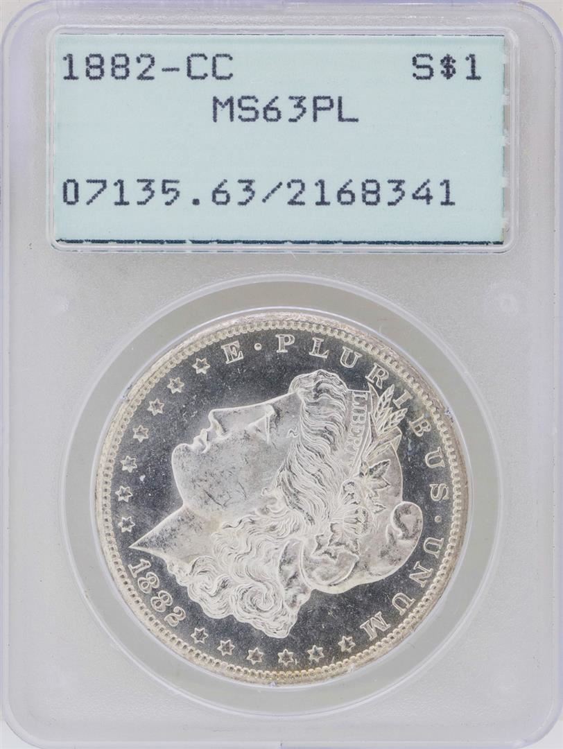 One 1882-CC $1 Morgan Silver Dollar Coin PCGS MS63PL Old Green Rattler. PCGS Graded.