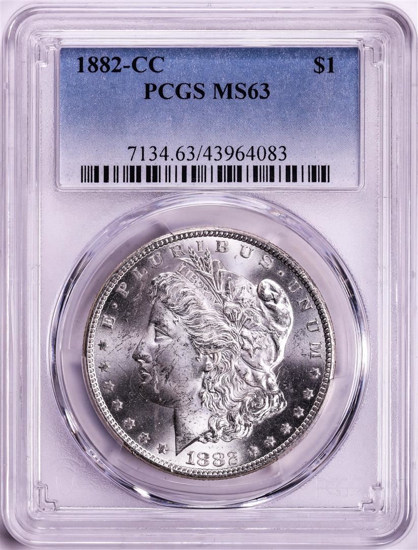 One 1882-CC $1 Morgan Silver Dollar Coin PCGS MS63. PCGS Graded.