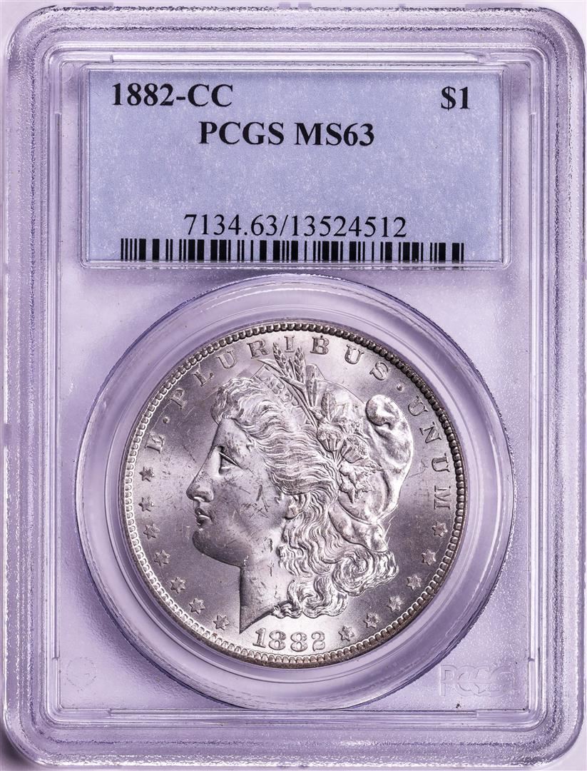 One 1882-CC $1 Morgan Silver Dollar Coin PCGS MS63. PCGS Graded.