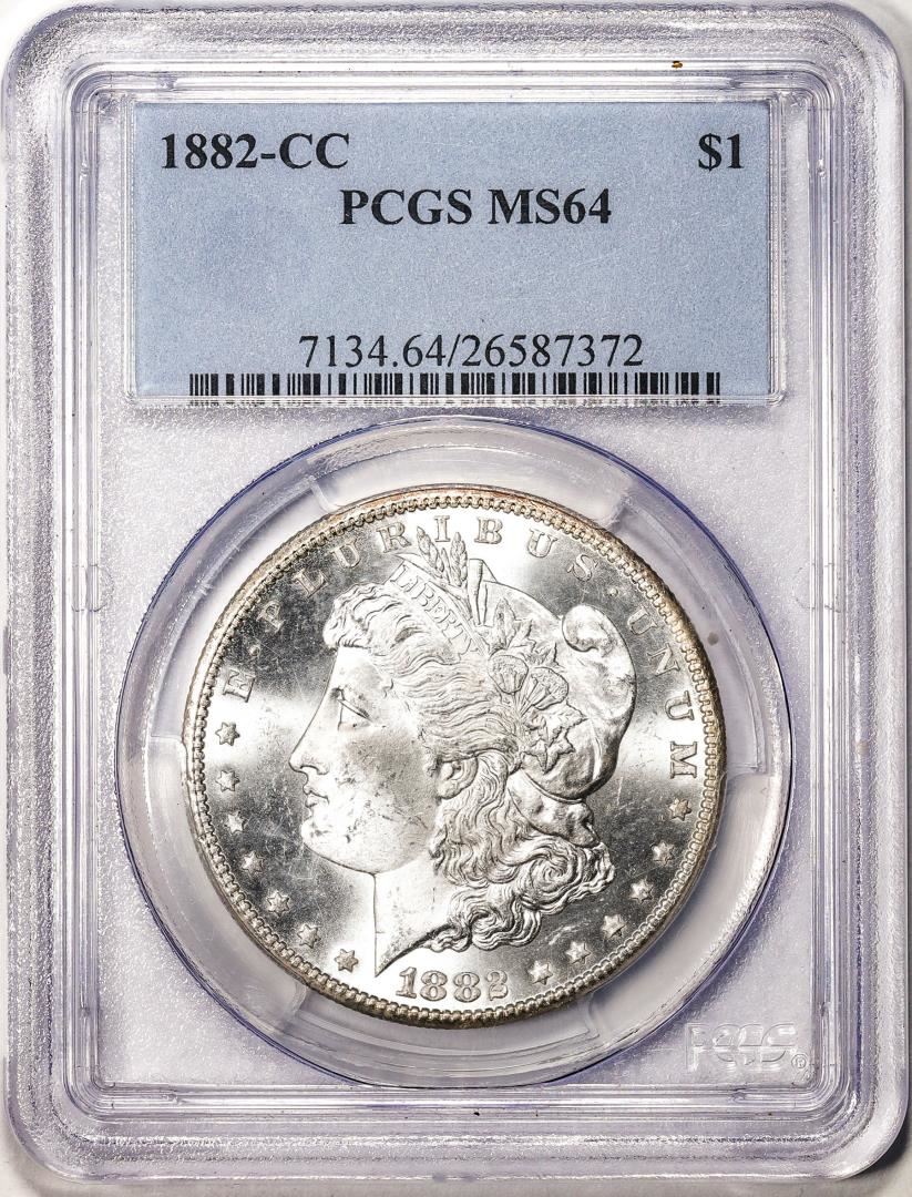 One 1882-CC $1 Morgan Silver Dollar Coin PCGS MS64. PCGS Graded.