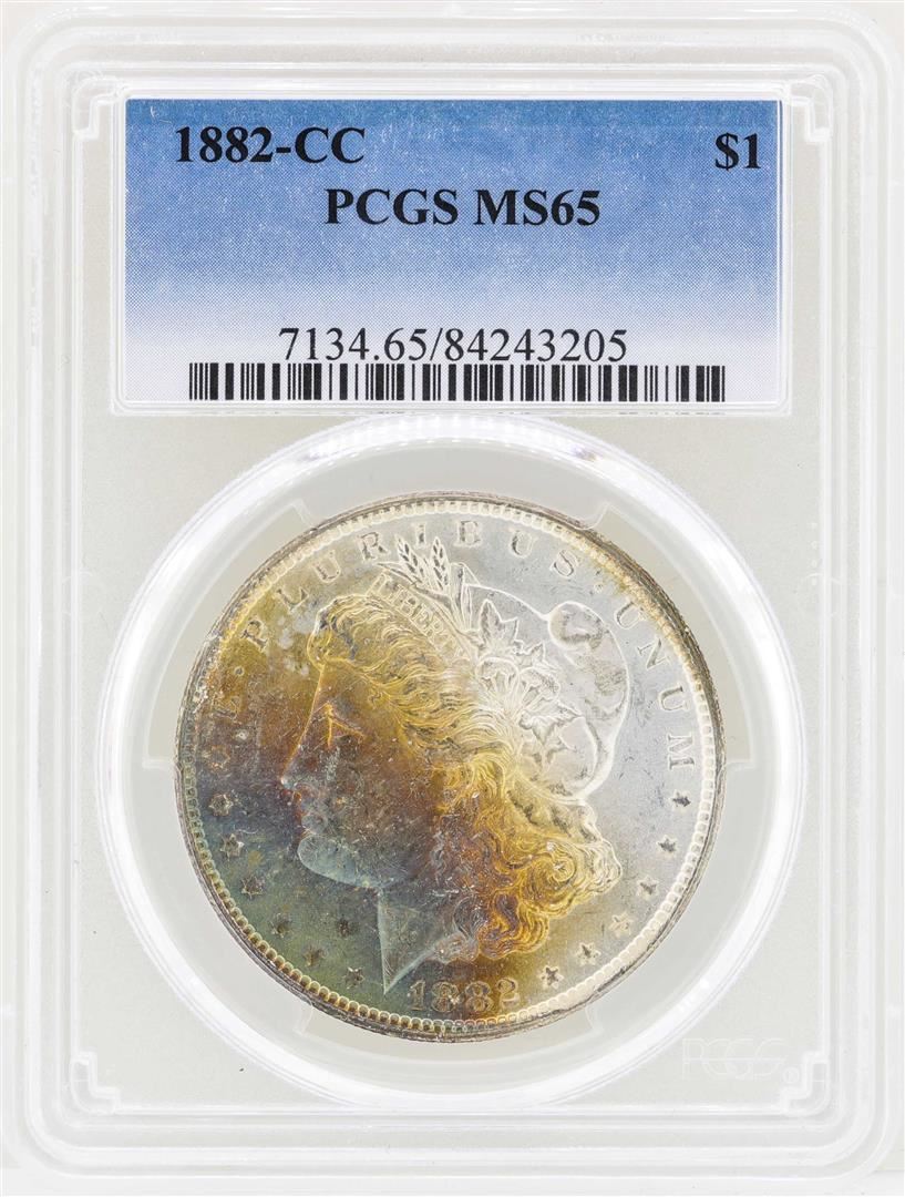 One 1882-CC $1 Morgan Silver Dollar Coin PCGS MS65 Great Toning. PCGS Graded.