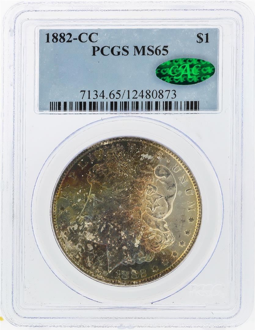 One 1882-CC $1 Morgan Silver Dollar PCGS Graded MS65 CAC. PCGS Graded.