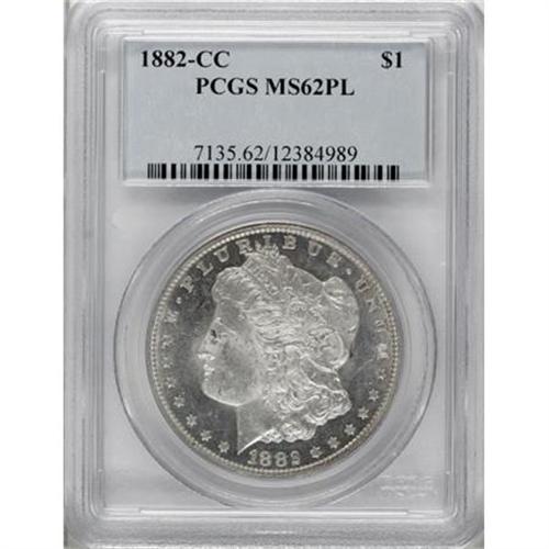 <B>1882-CC $1 MS62 Prooflike PCGS.</B></I> PCGS Population (176/1697). NGC Census: (73/833). Numismedia Wsl. Price for NGC/PCGS coin in MS62: $196. (#7135)<BR><BR><B>Coin Engraver:</B> George T. Morgan<BR><BR><b>Shipping:</b> Coins & Currency (<a target="_blank" href="http://www.heritageauctions.com/common/shipping.php">view shipping information</a>)