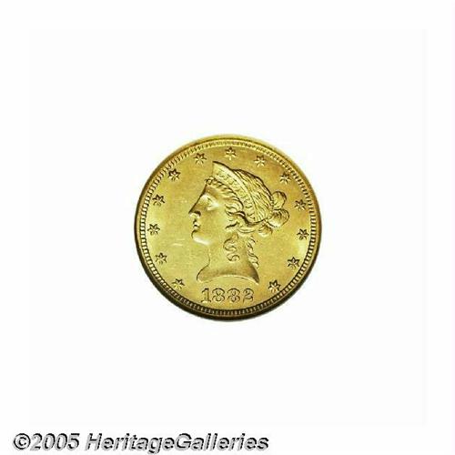 <B>1882-CC<$10> AU58 NGC.</B></I> A boldly struck Borderline Uncirculated example. The borders are dominated by bright luster, which also flows across the devices. Moderate marks near the neck, the RU in TRUST, and the D in TEN D do not especially distract. A mintage of 6,764 pieces ensures that this Carson City issue will always be in great demand.
