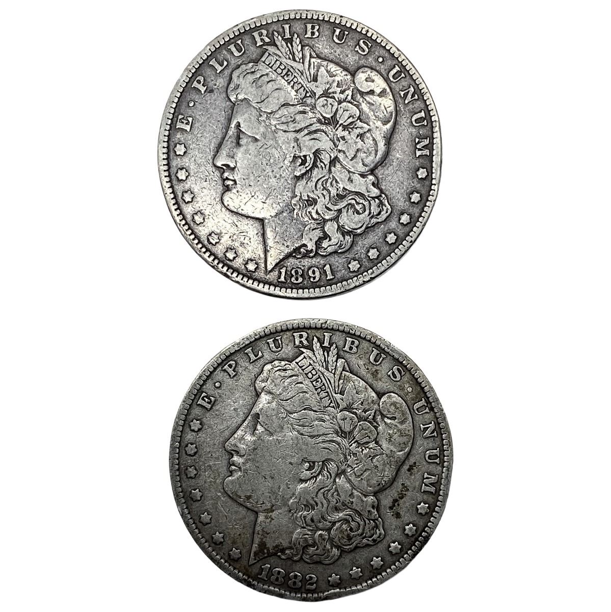1882-CC, 1891-CC Key Date Morgan Silver Dollar [2 Coins]