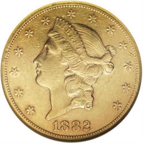 <B>1882-CC $20 AU55 NGC.</B></I> Traces of luster reside within the recesses of the yellow-gold surfaces of this Choice AU Carson City example, and an attentive strike brings out sharp definition on the design elements. A few minute marks are scattered about, including a couple of rim bruises, but these are fewer and less severe than typically found on the issue (Douglas Winter, 2001).<BR><BR><B>Coin Engraver:</B> James B. Longacre<BR><BR><b>Shipping:</b> Coins & Currency (<a target="_blank" href="http://www.heritageauctions.com/common/shipping.php">view shipping information</a>)