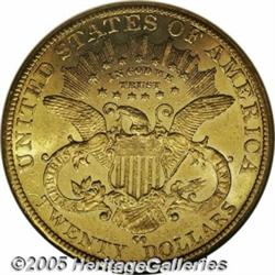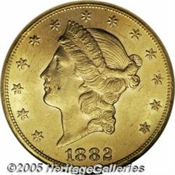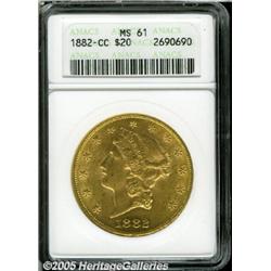 <B>1882-CC $20 MS61 ANACS.</B></I> A sharply struck Carson City representative with especially vibrant luster on the reverse. The obverse is refreshingly devoid of significant contact. A handling mark to the right of the shield is not apparent at first glance.<BR><I>From The Richard J. Chouinard Collection of United States Coins, Part Three.</B></I>