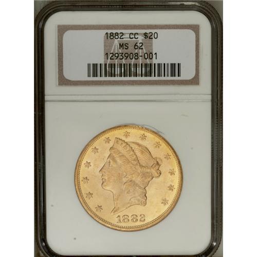 1882-CC $20 MS62 NGC. In the lowest Mint State grades,