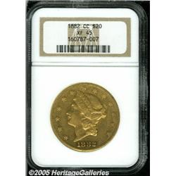 <B>1882-CC $20 XF45 NGC.</B></I> The 1882-CC Twenty, one of 39,140 pieces struck, is a popular choice as a type coin to represent the Carson City mint. The orange-gold surfaces display light contact marks, especially on the obverse.