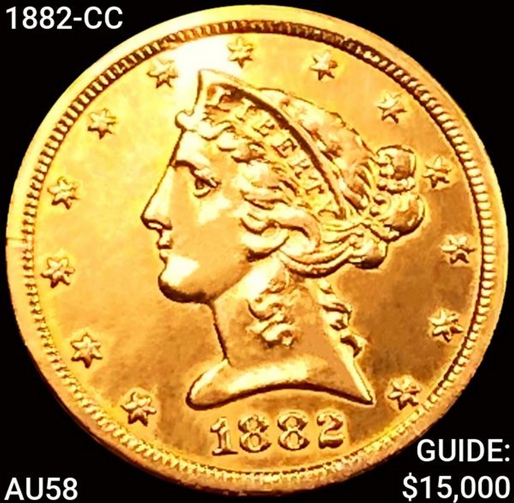1882-CC $5 Gold Half Eagle CHOICE AU