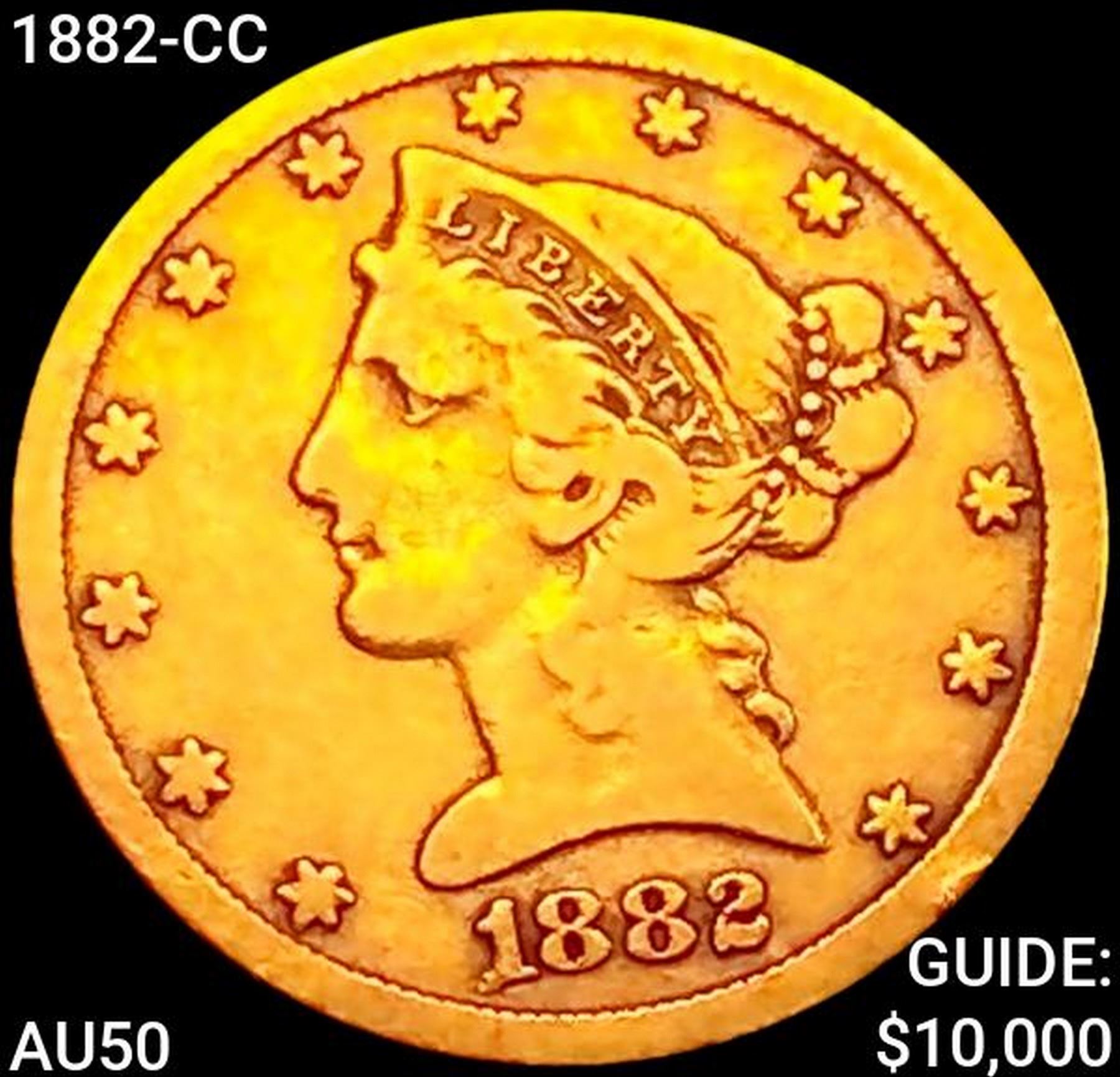 1882-CC $5 Gold Half Eagle CLOSELY UNCIRCULATED