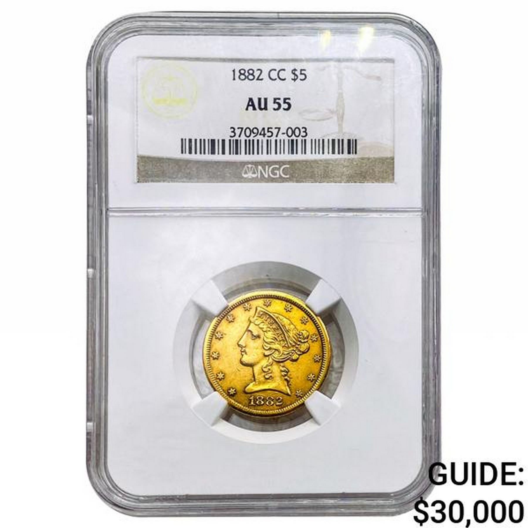 1882-CC $5 LH Half Eagle - Gold - NGC AU 55