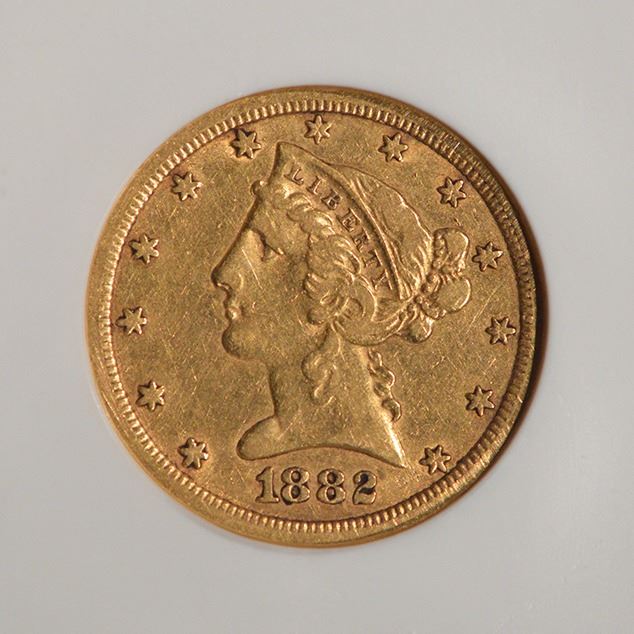 One 1882-CC $5 Liberty Head Half Eagle Gold Coin NGC XF40.