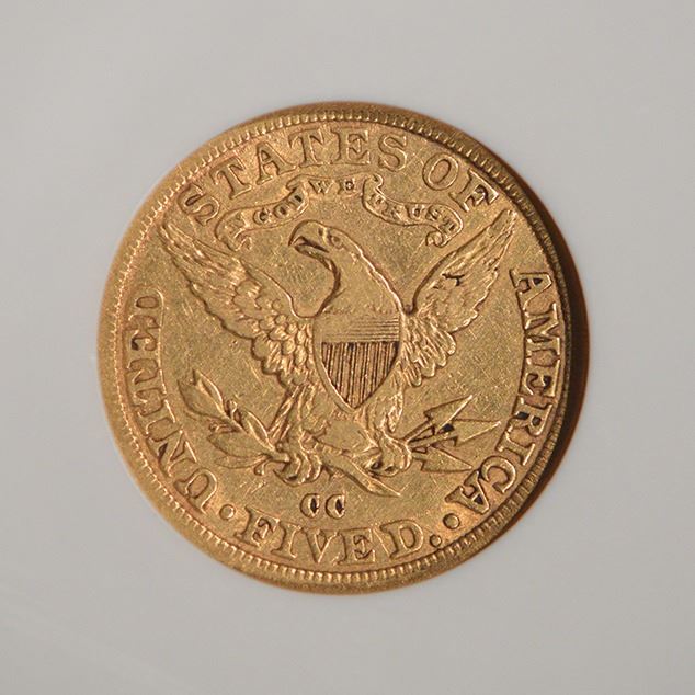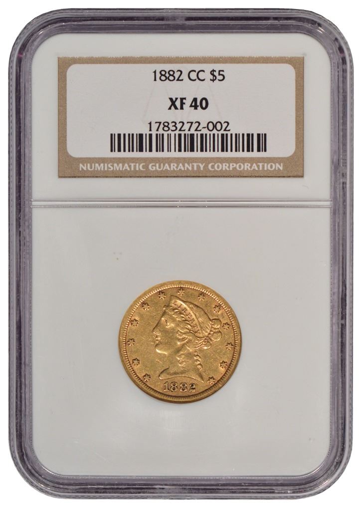 One 1882-CC $5 Liberty Head Half Eagle Gold Coin NGC XF40.