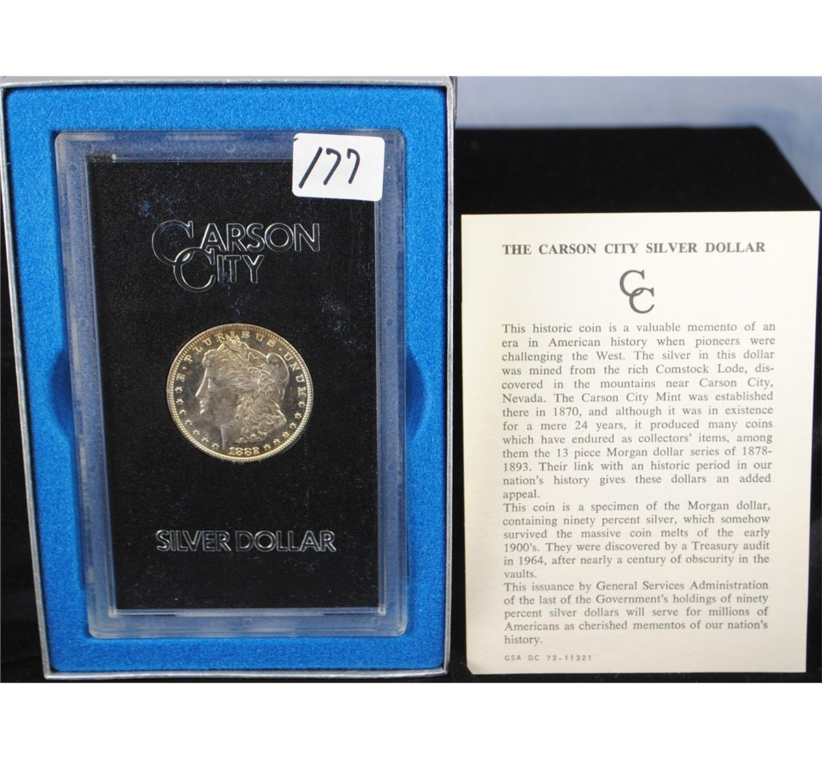 1882-CC GSA BLACK BOX MORGAN DOLLAR WITH ORIGINAL BOX AND CERTIFICATE OF AUTHENTICITY