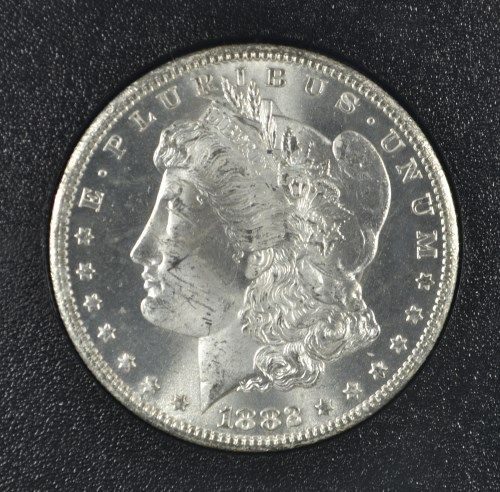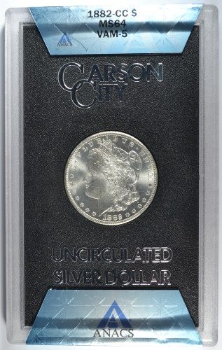 1882-CC GSA MORGAN SILVER DOLLAR, ANACS MS-64, NO BOX OR CERTIFICATE
