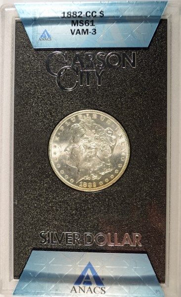 1882-CC MORGAN SILVER DOLLAR, GSA ANACS MS-61 ( NO BOX OR COA )