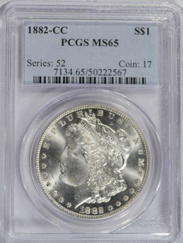 1882-CC MORGAN SILVER DOLLAR, PCGS, MS-65 WHITE