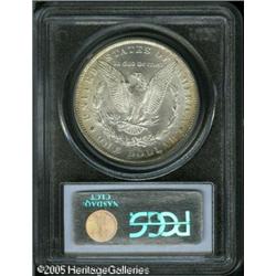 <B>1882-CC<img border='0' src='http://www.heritagecoins.com/images/star.gif' width=10 height=10>$1 MS65 PCGS.</B></I> Highly lustrous with frosty surfaces. The obverse has golden-olive and iridescent toning while the reverse is fully brilliant with a trace of gold along the border. Lot:10069