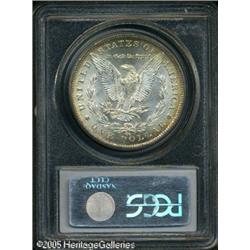 <B>1882-CC<img border='0' src='http://www.heritagecoins.com/images/star.gif' width=10 height=10>$1 MS66 PCGS.</B></I> Nicely struck, with a swath of multicolored toning at the upper obverse and lower reverse borders. A few minute marks on Liberty's cheek are mentioned for accuracy. Lot:10077