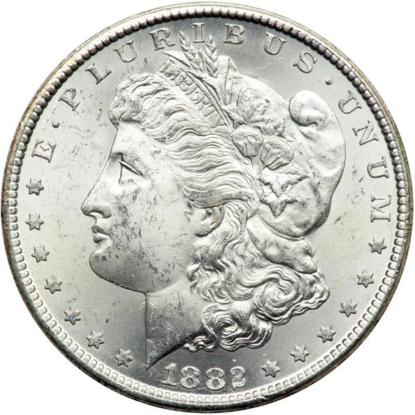 1882-CC Morgan Dollar. PCGS graded MS-63. Frosty and white (PCGS # 7134) .