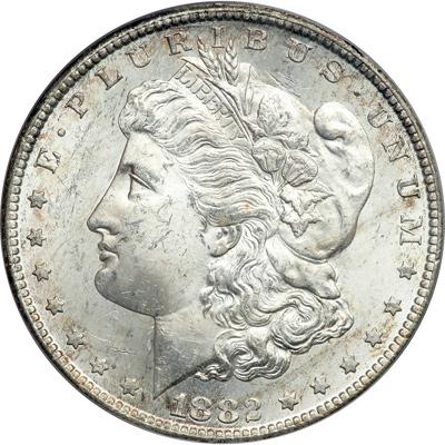 1882-CC Morgan Dollar. PCGS graded MS-64. Light golden toning. Right off the bat, the luster spreads evenly across the surface without a single lapse in its flow. A real charmer! (PCGS # 7134) .