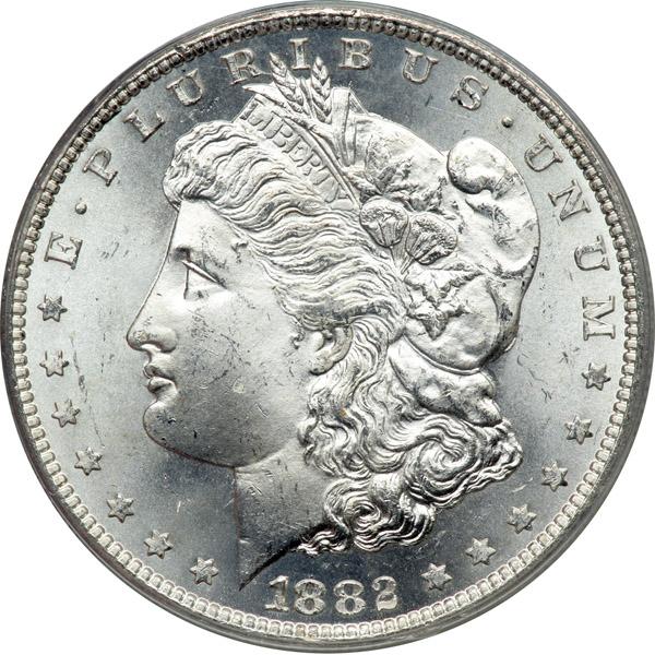 1882-CC Morgan Dollar. PCGS graded MS-65. Housed in an Old Green Holder. A nice white coin (PCGS # 7134) .