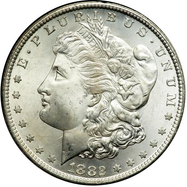 1882-CC GSA. A frosty untoned example. In a black GSA holder. Pop 262; 13 finer, 4 in 66 Star, 8 in 67, 1 in 67 Star .