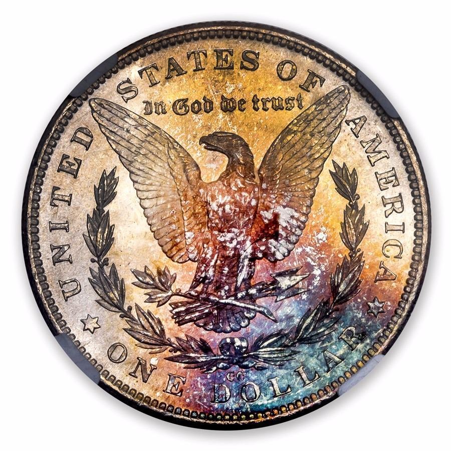 1882-CC Morgan Dollar MS-67 NGC. HIGHEST GRADE KNOWN FOR THIS COIN. This coin has a blast white obverse and partially toned reverse. NGC population of only 52 coins in MS-67 with none finer.
