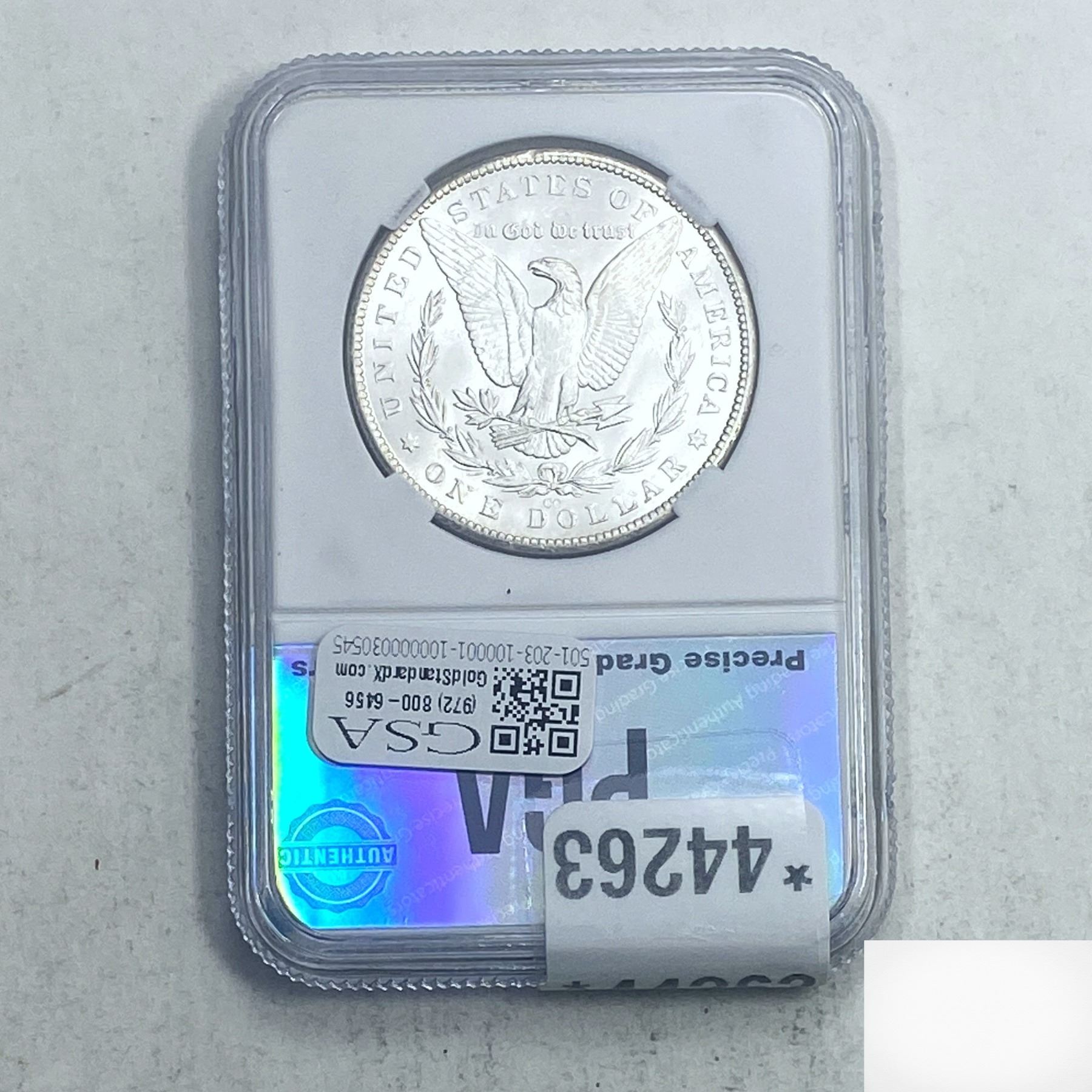 COINS AND CURRENCY LISTED IN GSA’S CATALOG AS GRADED AND ENCAPSULATED BY PCGS, NGC, ANACS, ICG, PCGS CURRENCY, PMG, PCGS BANKNOTE GRADING, CMC OR ANY OTHER THIRD-PARTY GRADING SERVICE ARE LIKEWISE SOLD “AS-IS” EXCEPT AS EXPRESSLY SET FORTH HEREIN. ALL THIRD-PARTY GRADING SERVICE GUARANTEES, INCLUDING AUTHENTICITY, ARE THE SOLE RESPONSIBILITY OF THE THIRD-PARTY GRADING SERVICE AND NOT WARRANTIES OR GUARANTEES OF GSA. BIDDERS SHOULD CONTACT THESE THIRD-PARTY GRADING SERVICES DIRECTLY WITH RESPECT TO ANY CLAIMS OR QUESTIONS THEY MAY HAVE CONCERNING THEIR GUARANTEES AND WARRANTIES. BIDDERS ACKNOWLEDGE AND AGREE THAT AUCTIONEER IS NOT BOUND BY OR LIABLE FOR ANY OPINION OR CERTIFICATION BY ANY THIRD-PARTY GRADING SERVICE. REMOVAL OF A PRODUCT FROM ITS PROTECTIVE CASING OR HOLDER OR ALTERATION OF ANY COIN HOLDER WAIVES ALL RIGHTS CONCERNING THE PRODUCT CONTAINED THEREIN.