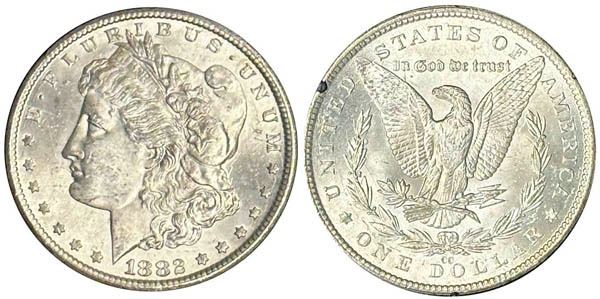 1882-CC Morgan Dollar. In a lovely presentation box with papers of authenticity. Uncirculated. Greysheet $290 for MS62.